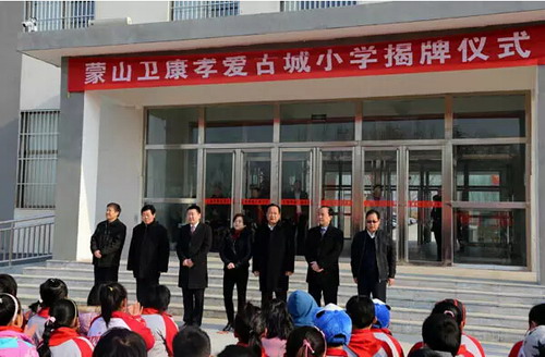 3月1日,由卫康生物集团捐资建设的蒙山卫康孝爱古城小学揭牌仪式在蒙山旅游区举行。中国社会福利基金会副秘书长缪瑞兰,蒙山管委会党委书记刘桂民,党委副书记、主任解东等领导班子成员,卫康生物集团董事长王宗继等相关领导、嘉宾及来自全国各地的500多名经销商代表和学校师生共同参加了仪式。缪瑞兰、刘桂民、解东和王宗继共同为古城小学进行揭牌,仪式由解东主持。