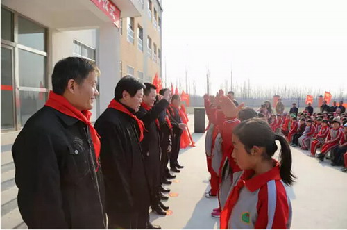 揭牌仪式上,少先队员为领导及嘉宾佩戴红领巾