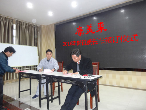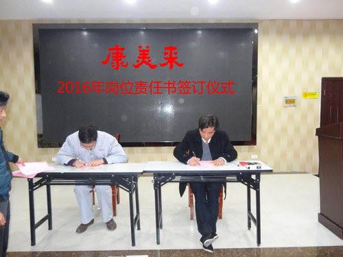 为适应公司大发展需要,为客户提供高品质的健康产品,全面完成年度工作目标,2016年2月25日,康美来公司召开了生产、质量、技术等部门领导干部会议,对2016年度工作任务进行分解布置并签订了责任书。