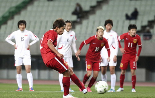 但中国队并没有气馁,只要终场哨没吹,全队就要奋力去打。姑娘们的努力没有白费,补时最后一分钟,王霜单刀突入禁区,被金恩香在背后放倒,中国队获得点球。王霜顶住巨大的压力亲自主罚一蹴而就,在最后时刻将比分扳成1比1。