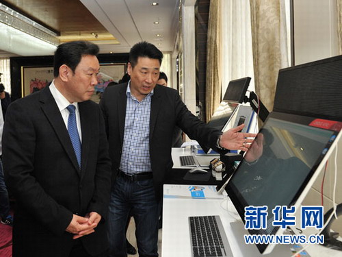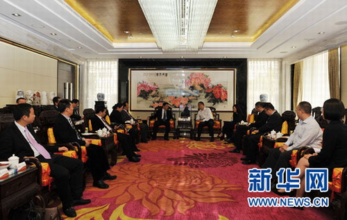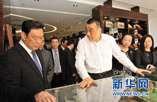 康美药业董事长、总经理马兴田向陈群峰市长介绍企业情况
