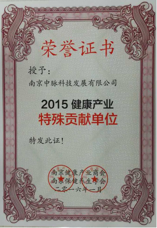 日前,南京健康产业商会、南京保健养生协会联合授予中脉科技“2015健康产业特殊贡献单位”的荣誉称号,以此表彰中脉科技在健康行业领域做出的突出贡献。