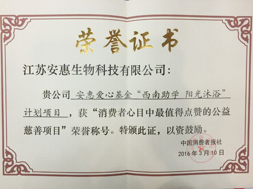 喜获殊荣 广大消费者为安惠爱心基金“点赞”