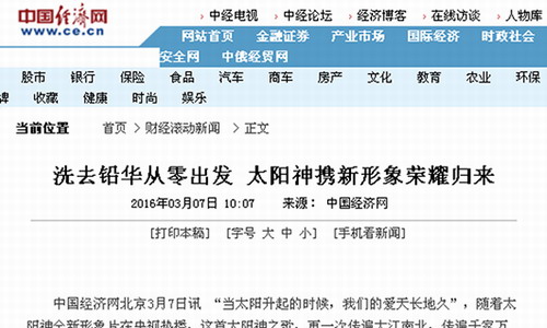 太阳神携新形象荣耀归来 获中国经济网赞誉