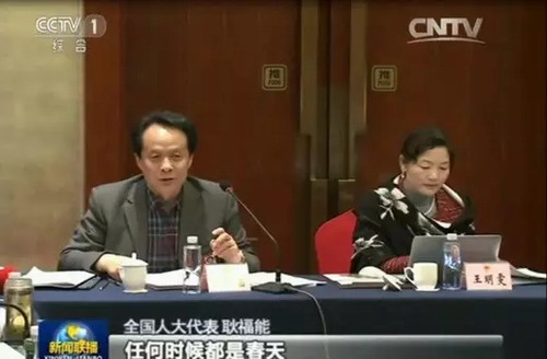 央视《新闻联播》播出全国人大代表耿福能发言
