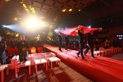 开场前举行庄严的升旗仪式