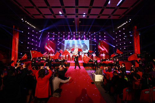 铸源集团员工自编自导自演《国家》手语舞,把会场气氛带向高潮