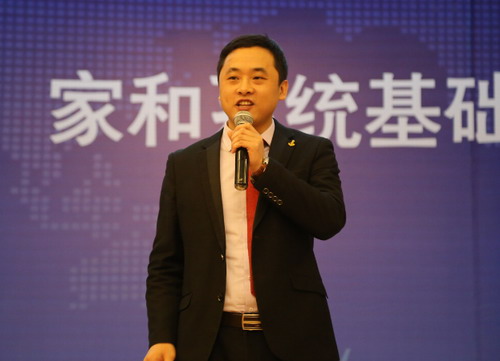 家和系统总裁覃馨慧发表讲话