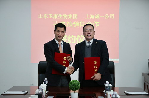 3月10日上午,山东卫康生物集团会议室内,卫康生物集团副董事长、常务副总裁刘中伟与上海诚一食品原料有限公司董事长李泼的手紧紧握在了一起。两家企业正式签署了《壳寡糖销售合作协议》,迈出了共赢的关键一步。