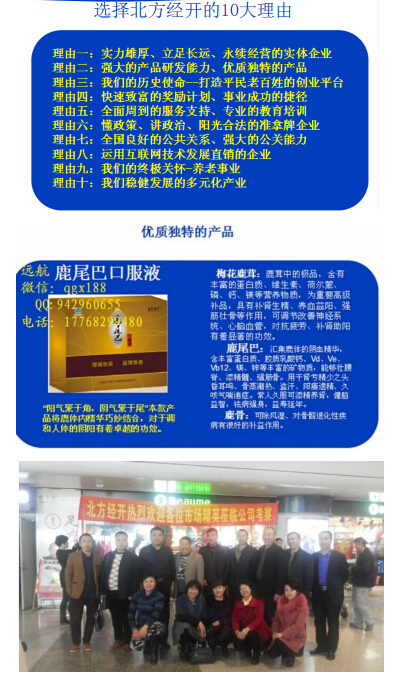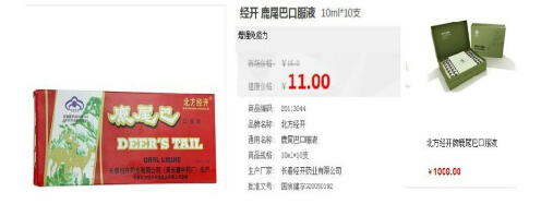 从消费者提供的材料来看,该公司主营产品为保健品。雄锦胶囊其中一款主打产品,称其产品对壮阳有奇特功效,服用一次,保持三天。另一款北方经开牌鹿尾巴口服液。宣称该产品提取自梅花鹿的鹿茸,鹿尾巴,鹿骨髓。具有神奇的全方位调养功效,服用一支,精力充沛。一盒产品价格高达1000来块。但是,该消费者也透露,这些产品压根就没有其宣传的那么好。喝了几盒也没有达到过宣传的效果。而从经销商提供的产品说明书上,明确标明:提升免疫力。并无所谓的奇效。并且了解到,市面上同类型的鹿尾巴口服液,也是由经开公司生产的,只是包装盒不同,售价不过十来块钱,而长春北方经开公司却卖到1000多。市场利润空间巨大。