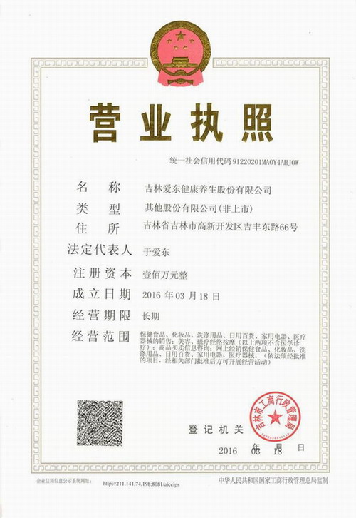 三月十八日,作为吉林东升伟业生物工程集团有限公司的控股子公司,以健康养生为主营业务的吉林爱东健康养生股份有限公司经工商注册正式成立。