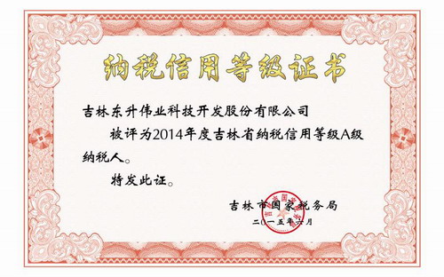 依法纳税是企业履行社会责任的主要职责。东升伟业创建14年以来,一直把向国家多纳税,让会员多创收,为社会履职责,做为企业的首要工作之一。多年来,我公司一直是吉林的纳税大户,纳税先进企业,本次又获得了“2014年度吉林省纳税信用等级A级纳税人”。