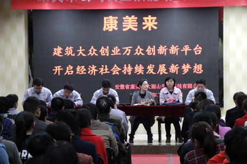 2016年3月17日下午,金寨县人社局副局长余靖一行到康美来公司举行技能培训(民生工程)开班仪式,康美来公司106名员工参加了开班仪式并进行了首期技能培训。