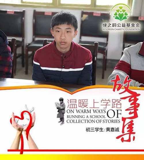 浏阳市小河乡小河初中初三学生。母亲去年做了胆结石割胆结手术,花光了积蓄。黄嘉诚还有一个姐姐在湖南师大读书,勤工俭学。目前,家里重担全压在身体也不是很好的父亲身上。平时父亲主要靠种田和打零散工挣钱,但远远不够维持家用、以及母亲的药费和两个孩子的学费。黄嘉诚说他现在只希望能够早点工作赚钱,这样就能减轻家里的负担。