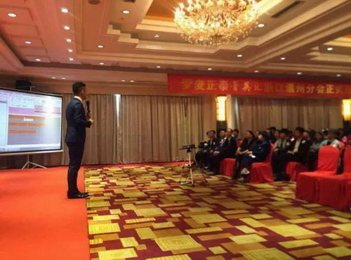 北京罗麦科技有限公司市场部经理叶江代表公司为罗麦菁英汇温州分会现场授旗,此举标志着罗麦菁英汇温州分会宣告正式启动。