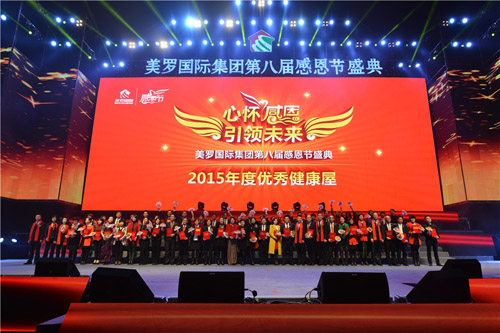 感恩节的舞台上,永远充满家人的喜悦、成功和荣耀!他们对人类健康事业的每一份贡献,都会写进这个大家庭的发展史;他们的每一份付出,在两位联合创始人心中,都拥有着不可替代的价值!第八届感恩节盛典开启感恩时刻:对市场上成绩突出的家人进行表彰,隆重颁发了2015年度销售精英奖、拓展精英奖和优秀健康屋奖;对表现优异的家人授予新晋荣衔表彰,分别授予他们美罗国际新晋市场一星、二星、三星、四星、五星经理荣衔;授予肖建彬先生、刘晓珍女士、王宏菊女士、江求彩女士、蒋平女士、李汉兰女士、刘晓珍女士美罗国际新晋市场一级总裁的表彰。这是对他们在事业发展的最高肯定,是至高荣誉!