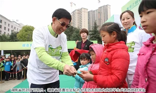 随后,中共浏阳市委常委、市政府党组副书记、常务副市长张作林发表重要讲话。他指出:近年来,浏阳市委、市政府高度重视体育事业,出台扶持政策,持续加大投入力度,公共体育设施日益完善,全民健身蔚然成风,体育事业呈现出蓬勃发展的良好态势。绿之韵集团是一家具有高度社会责任感的企业,多年来热心公益事业,今天又通过本次活动对浏阳市小河乡乌石村的孩子们予以公益援助,充分彰显了企业的责任担当和社会价值。希望通过本次活动传递爱心,让更多的社会各界朋友关注公益事业、投身公益事业。
