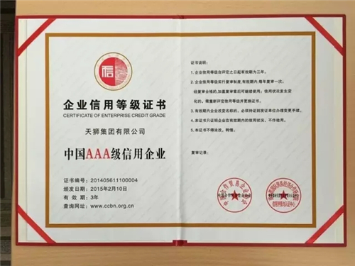 天狮集团荣获“中国AAA级信用企业”