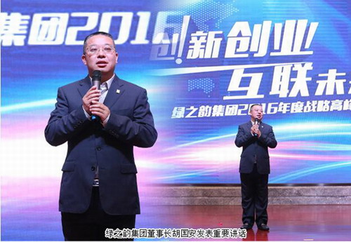 春回大地、草木拔节,一派欣欣向荣、蓬勃向上的美好景象。2016年3月25日,“创新创业·互联未来”绿之韵集团2016年度战略高峰论坛在湘潭绿之韵国际大酒店盛大举行。绿之韵集团董事长胡国安,金石资产管理有限公司管理合伙人、易保网通科技有限公司董事长王瀚宇,绿之韵集团企业战略发展顾问、中国直销市场研究学会秘书长胡远江,绿之韵集团董事执行总裁劳嘉、集团高管团队等亲临现场,与到场的1500多名绿之韵家人一起共襄年度盛会,谋划未来,开启新一轮的时代征程。大会全程通过微信在线互动视频直播,线上80000多人共同收看和分享了此次大会盛况。