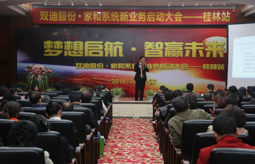 为了让一季度营销业绩再攀新高峰,3月26日,以“梦想启航,智赢未来”为主题的新业务启动大会,分别在桂林、成都两地同时召开。这是继本月的山西、昆明、大连、河池会议后,家和系统召开的又一次重要新业务启动大会。
