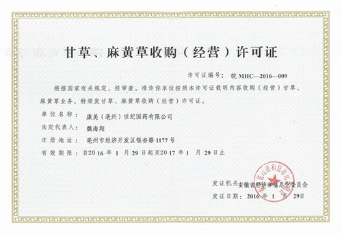 康美世纪国药公司获甘草、麻黄草收购许可证