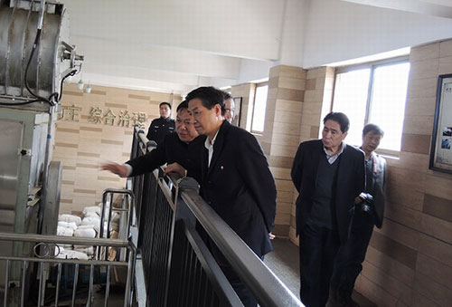 省人大常委会原副主任蔡力峰(左三)、益阳市人大常委会主任徐云波(左二)、安化县委书记杨光鑫(右一)在董事长陈社强(左一)的陪同下视察万隆黑茶产业园