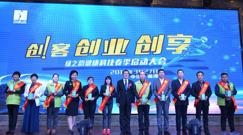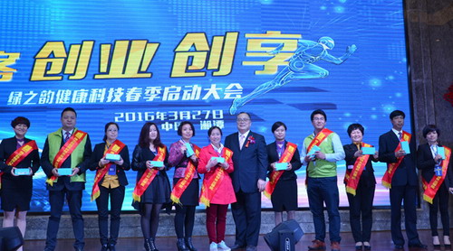 在绿之韵健康科技,有这么一群人,他们是胸怀大志,超越梦想的创业者。他们来自四方,四处拼搏;他们不甘于平庸无为,不接受命运摆布;他们具有勇气和远见,自知和真诚,进取和信心;他们品尝创业的艰辛,收获创业的馈赠;他们用坚韧积蓄力量,用实力照耀自己和家人的未来。会上,绿之韵集团健康科技“大众创业特别奖”、“大众创业三等奖”,“大众创业二等奖”,“大众创业一等奖”一一揭晓。在所有人的翘首企盼中,这些创客时代的英雄们身着华丽服饰,神采奕奕地走上荣光无限的舞台,接受荣耀与鲜花、掌声与喝彩。