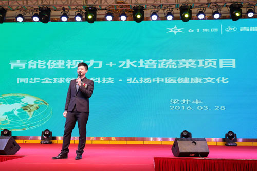 青能健品牌负责人梁井丰现场讲解了青能健龙树视力矫正和碧蒙士水培蔬菜项目。青能健龙树视力矫正是利用中医手法结合现代治疗仪器,整合经穴刺激、穴位敷贴、视力训练、营养支持等多种手段,综合而成的一种近视调理方法。不吃药、不打针、不手术,绿色安全不反弹,是一个造福人类的健康项目。碧蒙士水培是一种在家庭轻松实现的蔬菜种植技术,从根本上解决了因土壤污染和化肥农药导致的重金属含量超标、农药残留等问题,打造高品质,无公害的健康蔬菜。用碧蒙士水种植的蔬菜具有产量高、生长速度快、品质好、省时省力省心四大优势,把“绿色菜园”带回家,鲜嫩爽脆的无污染蔬菜吃着更健康!