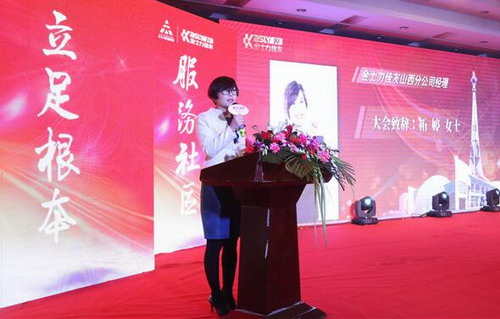 大会在《盛世华章》的舞蹈中拉开序幕,山西分公司经理拓婷首先致辞,对各级领导的支持表示感谢,对各位市场伙伴们的努力给予肯定,并激励大家要全力以赴,为2016年山西市场的跨越、腾飞而努力!