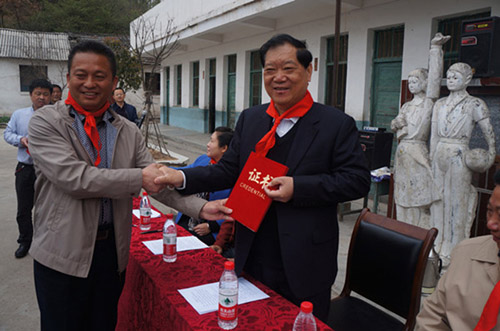 (鸡公山管理区领导感谢荣格爱的力量公益基金会对李家寨水口庙小学的关怀和帮助)