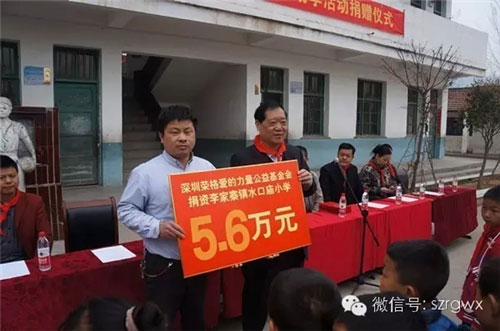 荣格爱的力量公益基金会为鸡公山管理区李家寨水口庙小学捐献5.6万元