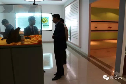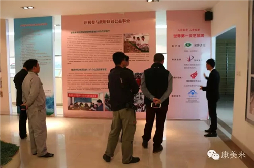 讲解员向考察领导介绍公司公益事业以及科技成果