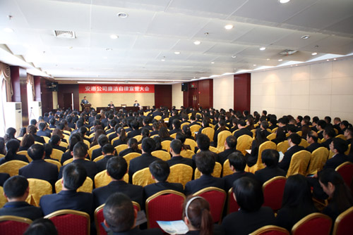 “我自觉遵守国家的法律、法规和公司的各项规章制度,加强廉洁风险防范,恪尽职守,廉洁自律,不参与对公司有负面影响的活动,不收取供应商、经销商和其他合作单位赠送的礼品和财物,不利用职权谋取不正当利益。”4月11日,在安惠公司廉洁自律宣誓大会上,300多名员工作出郑重承诺,宣誓声整齐而庄严。