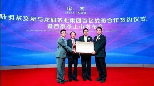 陆羽国际茶业交易中心董事长严建红博士与龙润集团董事长焦家良博士共同签署了百亿战略合作协议,并将茶金融中心授予陆羽会总经理李文瀚和龙润茶投资收藏事业部总裁、华北营销中心副总经理许耀南,双方合作共建龙润茶金融中心,充分挖掘龙润茶的金融价值,发挥投资对传统产业增长的关键性作用,将严格统一的标准评级体系和公平、公开的线上交易模式引入茶交易领域,重塑消费者和投资人对中国茶业的信任感,共同推动中国茶标准化和信息化发展。