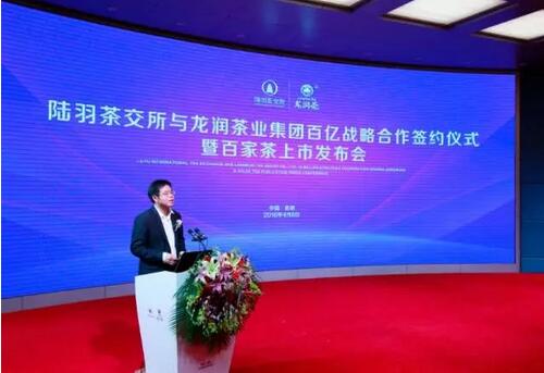 陆羽国际茶业交易中心董事长严建红博士对龙润茶为中国茶产业做出的贡献点赞,并在致辞中指出:“今天我们在龙润签订战略合作协议,开启‘龙润茶新十年百亿合作战略规划’,许下一个‘中国茶,中国梦’……龙润百家茶和陆羽茶交所将在集安全性、流动性、收益性于一身的现代茶叶流通平台进行公平公开的交易。我们具备了这样一张从商户经济到网络经济再到交易所经济的金字招牌和身份证。在座的茶人,从今天开始,你们将成为中国第一代的茶叶券商,成为让老百姓放心的中国茶文化推广使者和金融顾问。让我们一起为中国茶产业发展贡献力量。”