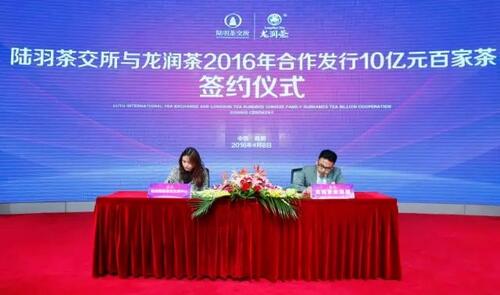随后,陆羽国际茶业交易中心副总经理章璐与龙润茶投资收藏事业部总裁、华北营销中心副总经理许耀南上台签署“陆羽茶交所与龙润茶2016年合作发行10亿元百家茶合作协议”,开启普洱茶“砖”属百家、健康品饮、收藏传承之新时代。2016年伊始,“龙润·百家茶赵1602”在陆羽国际茶业交易中心正式挂牌上线,交易首日即飘红涨停,投资人趋之若鹜,纷纷看好。此次签订合作协议,标志着龙润茶真正迈入互联网+金融的“资本市场”。