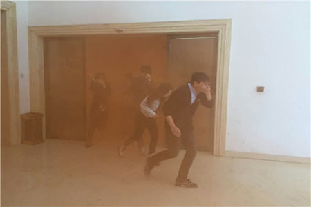 大家在烟雾弥漫中捂着口鼻迅速撤离