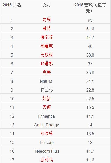 2016年4月8日,数百名世界各地直销公司高管齐聚美国德克萨斯州达拉斯洲际酒店举行盛会,庆祝世界100强直销公司取得优异的成绩。美国直销新闻网站DSN公布了2015年全球直销企业100强名单。