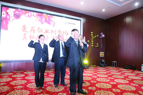 集团高管带领自己的团队用响亮的声音,庄重地向董事长表态并宣誓。现场群情激奋、斗志昂扬。所有卫康人表示将发挥卫康人独有的“全力以赴锲而不舍”精神,争分夺秒、攻克难点、顽强拼搏,以饱满的热情和昂扬的斗志投入到这场决定2016年成败的大战役当中去。