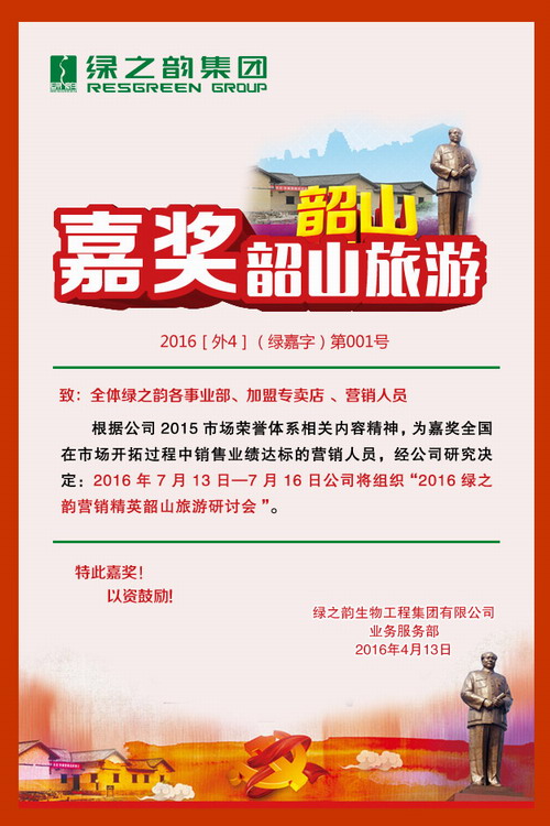 嘉奖营销精英 绿之韵韶山旅游研讨会即将召开