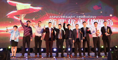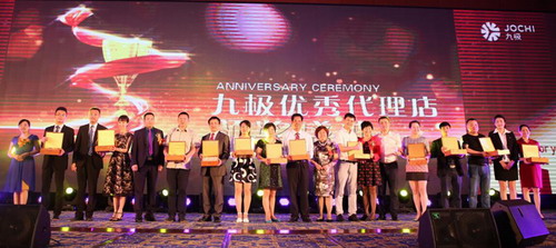 九极创新的三网合一项目运行一年以来,会员已经突破十万,产品用户更是突破百万大关,这巨大的进步来源于全国业务伙伴的不懈努力,会上,公司领导人分别向新晋钻石会员、优秀代理店、新晋优秀代理商颁发了荣誉奖杯,表彰他们取得的优异成绩。