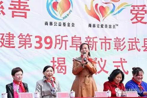 2016年4月14日,踏着清晨的阳光与希望,尚赫公益践行开始了2016年“让爱传出去”的幸福旅程——第39所尚赫公益小学——阜新市彰武县大德尚赫万宝雪学校成功举行揭牌仪式,700余名尚赫人为全校师生带来一份由衷的关爱与祝福。尚赫品牌寰宇大使万宝雪、李金海伉俪,寰宇双钻大使苗鑫、商廷哲伉俪,辽宁省扶贫协会韩家清副会长,当地政、教相关部门领导莅临现场,见证着一份属于尚赫品牌的大爱情怀。
