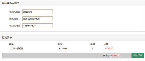 注册用户或登录用户后,进入在线支付页,进行购物服务订单: