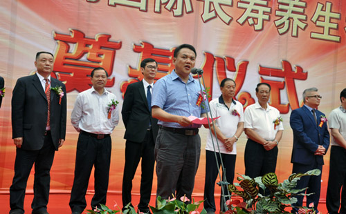 中脉健康产业集团董事局主席/中脉道和公益基金会主席周希俭发表致辞,他对中脉巴马国际长寿养生都会的未来发展和规划做了精彩阐述,表示中脉巴马国际长寿养生都会将建设成为高端的具有国际声誉的养生都会,并表示中脉愿意为生态巴马的建设贡献更大的力量,为世界奉献一处前所未有的顶级养生圣地。