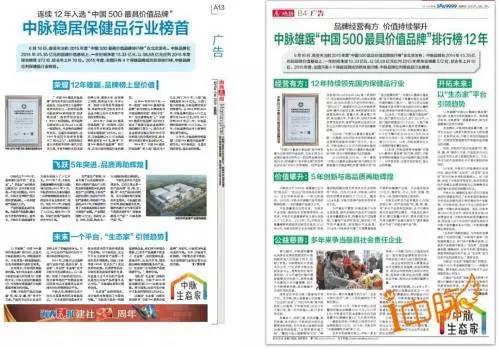 6月25日,国家新闻出版总署批复创办的唯一一份面向海西市民的综合性都市报《海西晨报》和厦门地区发行量最大、传阅率最高、覆盖面最广的报纸《厦门晚报》双双整版报道中脉连续12年入选“中国500最具价值品牌”。
