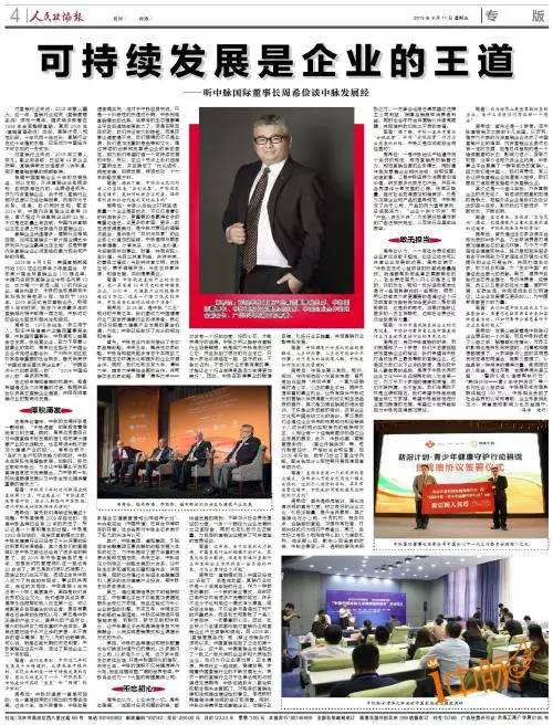 9月11日,由邓小平同志题写创刊报名的全国政协机关报《人民政协报》专访周希俭董事长,以“可持续发展是企业的王道”为题整版报道中脉。