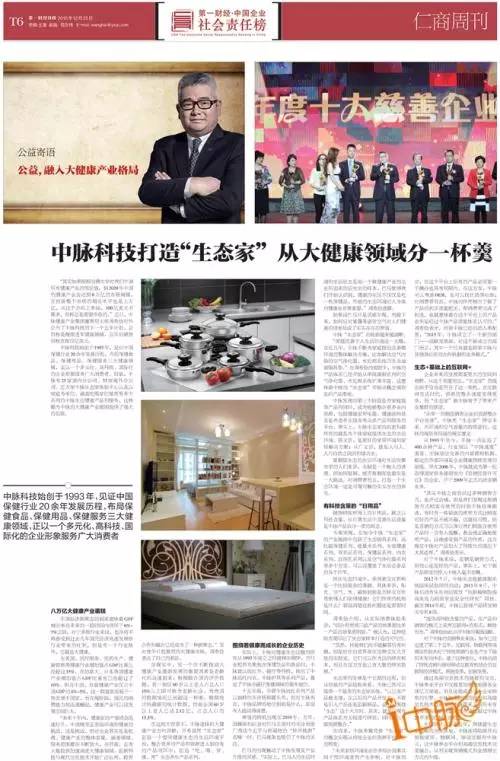 12月25日,第一财经日报以题为“中脉'生态家':把社会元素融入企业发展的CSR逻辑”和“中脉科技打造'生态家' 从大健康领域分一杯羹”双整版报道中脉。