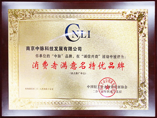 “中脉”品牌荣获消费者满意名特优品牌称号