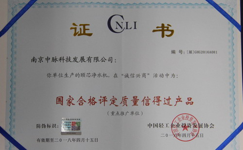 日前,中脉科技再传喜讯。中脉颐芯净水机在“2016全国产品质量信得过产品(企业)”评选活动脱颖而出,被评为“国家合格评定质量信得过产品”。