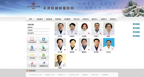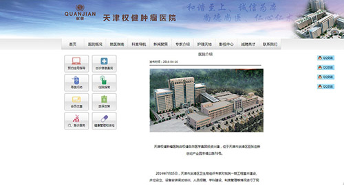 天津权健肿瘤医院官网采用全新的设计理念,界面简洁,风格清新,突出展示“和谐至上,诚信为本;尚德尚医,仁心仁术”的医院服务理念。力求通过科学正确的指导,系统的功能设计,人性化的服务内容,为广大患者提供最为便捷的医疗服务。同时,通过网站功能分区,在栏目内容设置的内涵与外延上进行了创新,不仅可以让广大患者以及社会大众更加全面清晰地了解医院信息,同时也搭建起医院与其他医疗及科学机构合作交流的平台。